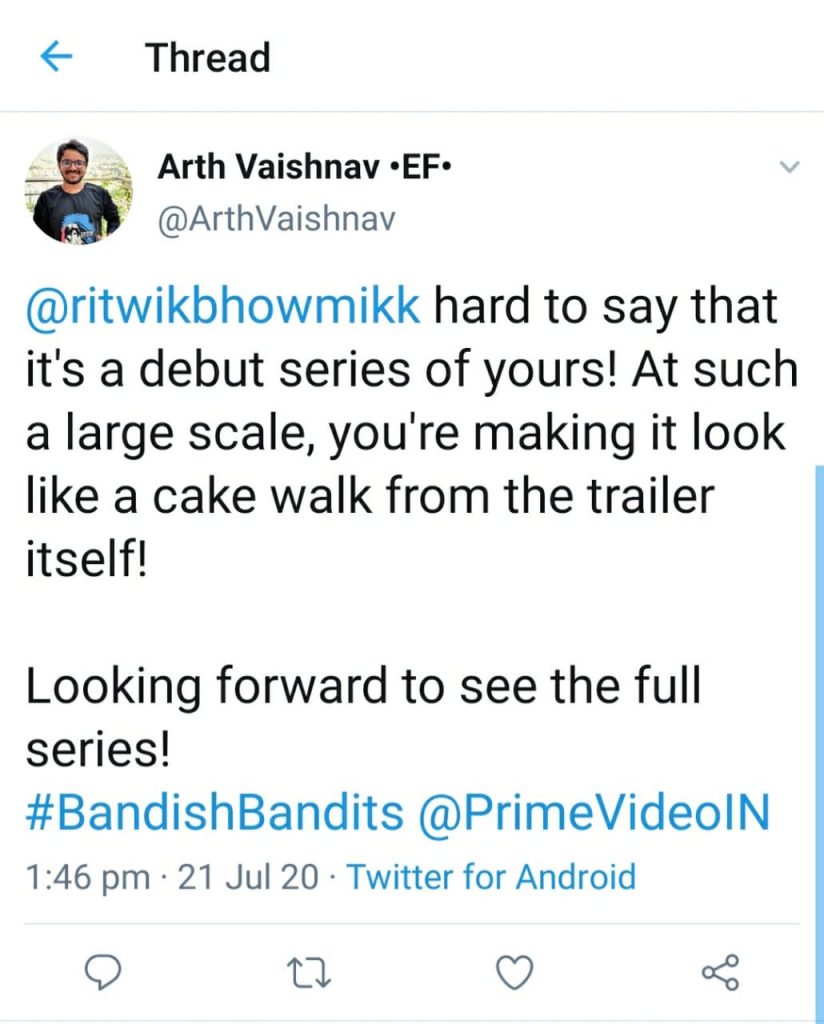 The trailer of the upcoming series of Amazon Prime Video’s titled Bandish Bandits released on 20th July 2020 and it was a double treat for the audiences as the day also marked Naseeruddin Shah’s birthday. The audience has loved the trailer and have welcomed the new age talent. Here’s what they have to say:
