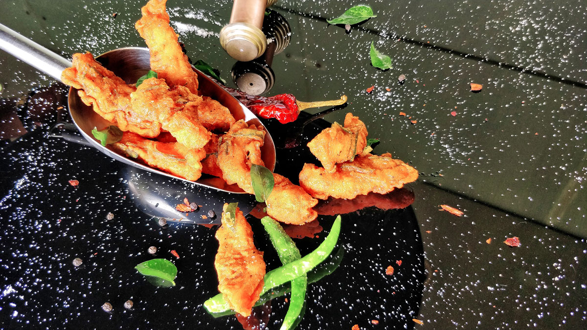 Enjoy this monsoon with Crunchy Chilli Pineapple Pakoda and Delicious Pepper Fried Chicken. These preparations are infused with southern herbs and spices like extremely aromatic curry leaves, Black Pepper, Tangy Tamarind, Spicy Chillies etc.
