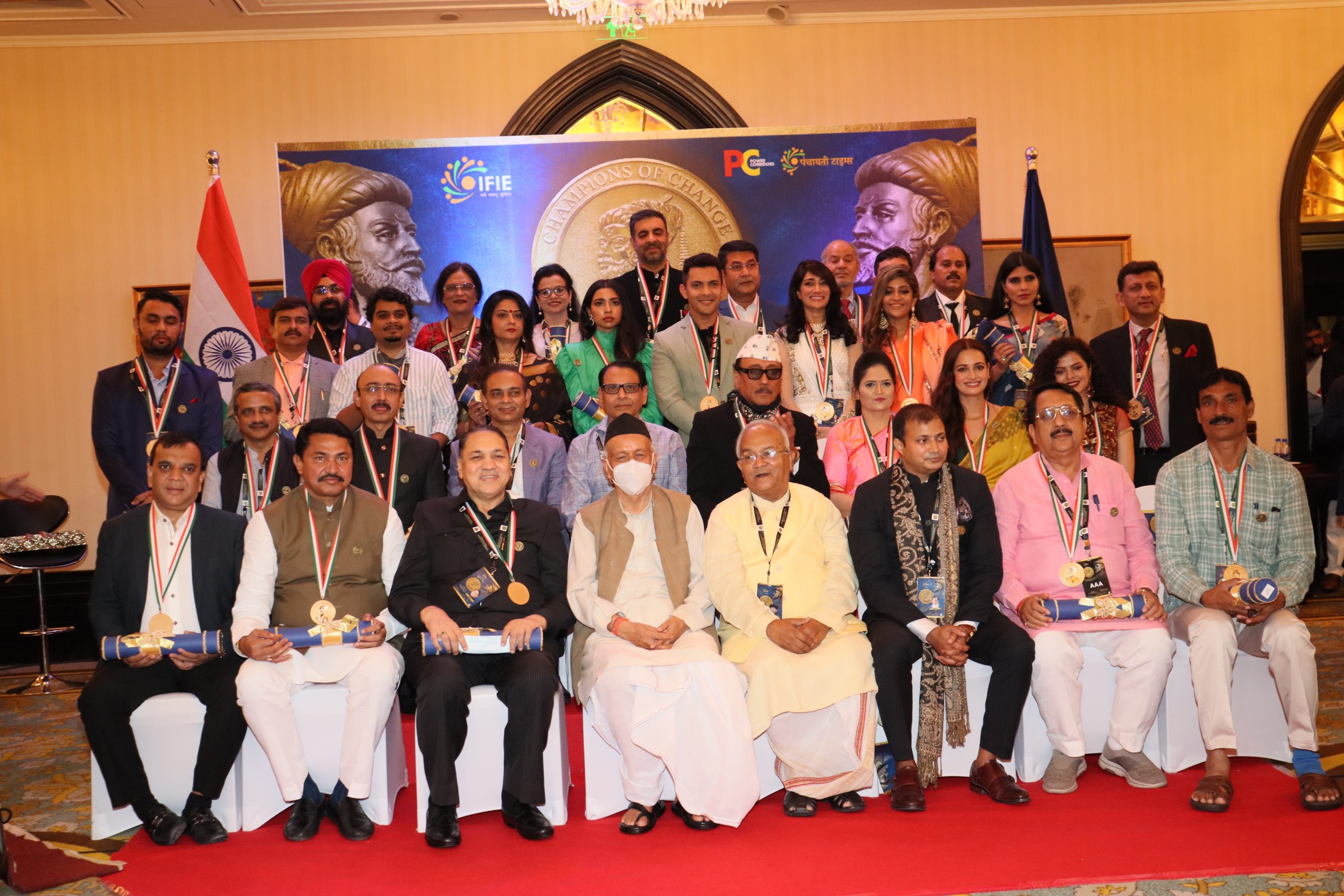 Mumbai’s Hotel Taj Mahal Palace witnessed the award ceremony of ‘Champions of Change Maharashtra’ on 30th September 2021. Hon’ble Governor of Maharashtra Sh Bhagat Singh Koshyari was the Chief Guest of the award ceremony while Dr. Ved Pratap Vaidik (Veteran Journalist) presided over the ceremony.The awardees included Home Minister of Maharashtra Dilip Walse Patil, Nana Patole (former Speaker of the Legislative Assembly, Maharashtra), Social activist Sindhutai Sapkal, Sarpanch of Hiware Bazar Popatrao Pawar, Bollywood actors Jackie Shroff and Dia Mirza, singer Palak Muchhal and several others who made useful contributions towards the social welfare.