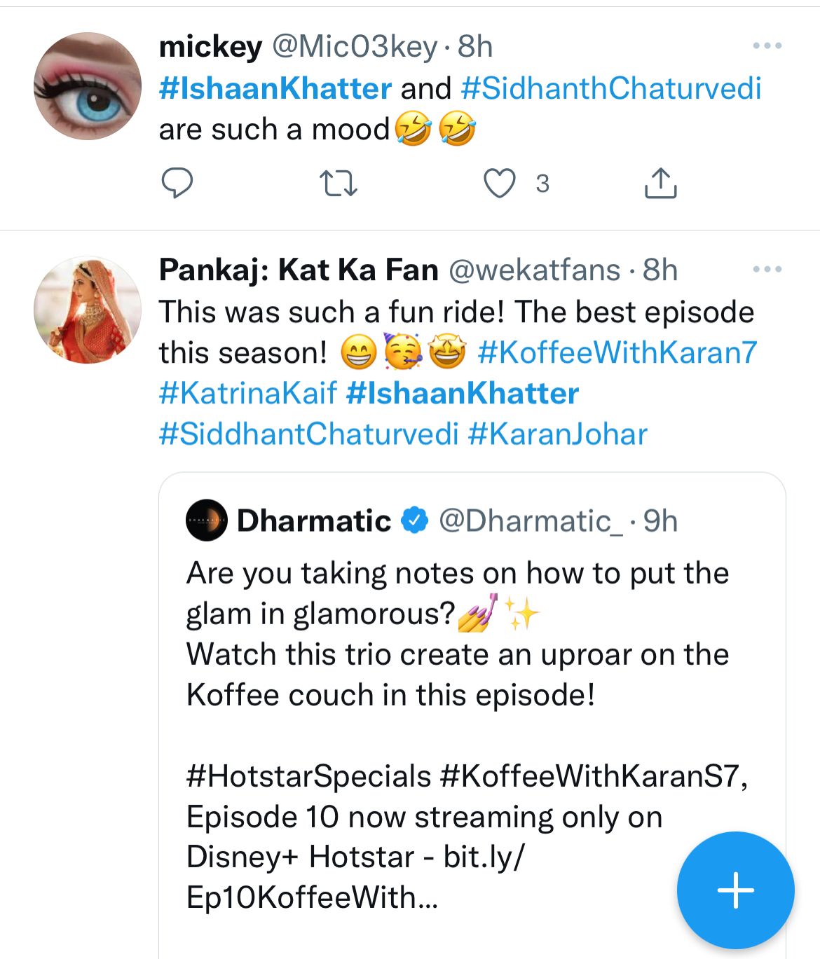 Now with the audience already anticipating the release of Phone Bhoot, watching Katrina Kaif, Siddhant Chaturvedi, and Ishaan Khattar on the most talked about show has added fire to their excitement. While the world fears speaking freely and chooses diplomacy easily, this trio came out to be a breath of fresh air. Several fans have come out on social media and are calling this episode to be the best one so far. The energy of these three is dynamic, positive, and vivacious and the audience can not wait to see more of them in cinema. While the conversations around Phone Bhoot are skyrocketing every day, this episode of Koffee With Karan turned out to be a much-needed dose of entertainment for the fans who are waiting for the film to hit the theatres!