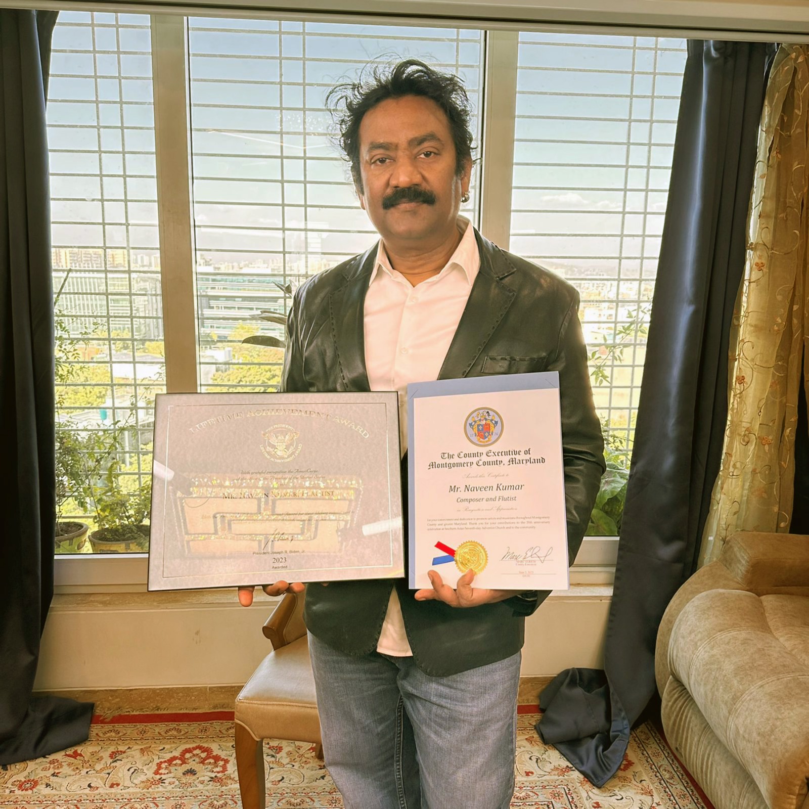 For his extraordinary achievements in the music industry flautist Naveen Kumar gets honoured by US President!
