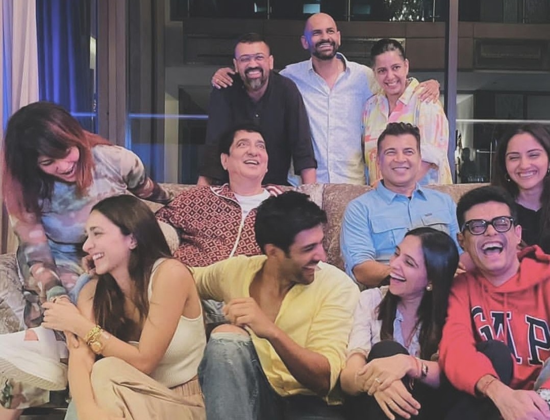 Taking to social media, Kartik Aaryan, who will be seen playing the lover boy Satyaprem in the film shares a picture of all smiling faces from his team and writes “Couldn’t sleep last night because of nervousness and didn’t sleep today because of happiness