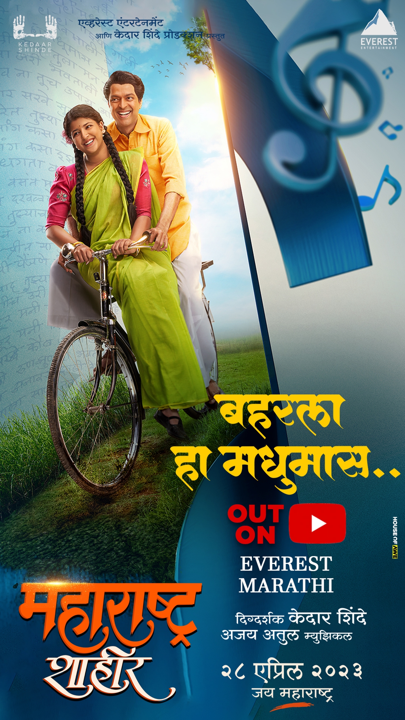 Penned by leading Marathi lyricist Guru Thakur, the song Baharala Ha Madhumas….has been sung by Shreya Ghoshal and Ajay Gogawale. Ajay-Atul has composed the song as music director of the film. The film stars Ankush Chaudhary and Sana Shinde in lead roles and the film is written by veteran writer and director Pratima Kulkarni.The film ‘Maharashtra Shahir’ is presented by Everest Entertainment and Kedar Shinde Productions and produced by Sanjay Chhabria and Bela Kedar Shinde.