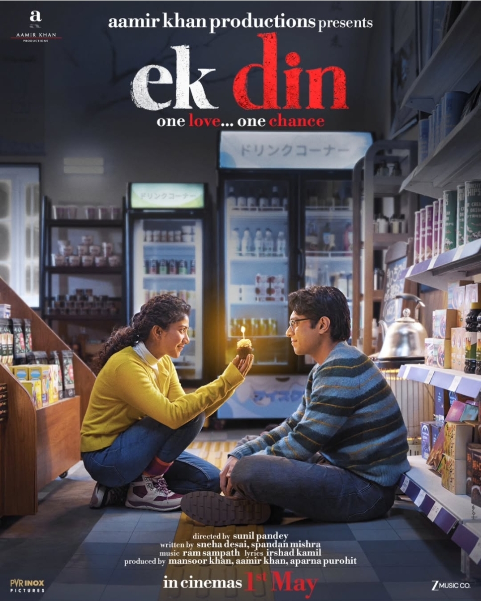Produced under the banner of Aamir Khan Productions, Ek Din stars Sai Pallavi and Junaid Khan. The film is directed by Sunil Pandey and produced by Aamir Khan, Mansoor Khan, and Aparna Purohit. The film is set to release in theaters on 1st May 2026.