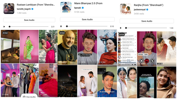 Adding to the soaring popularity on these platforms, the songs of Shershaah are a rage on short video platforms like TikTok, Josh, MX Takatak, Resso, Glance-Roposo among others. The love for the song Raataan Lambiyan can be witnessed from the number of Instagram reels being created by audiences which has now reached the 1.8 million mark while Mann Bharryaa and Ranjha have crossed the milestone of 515K and 345K Reels respectively.
