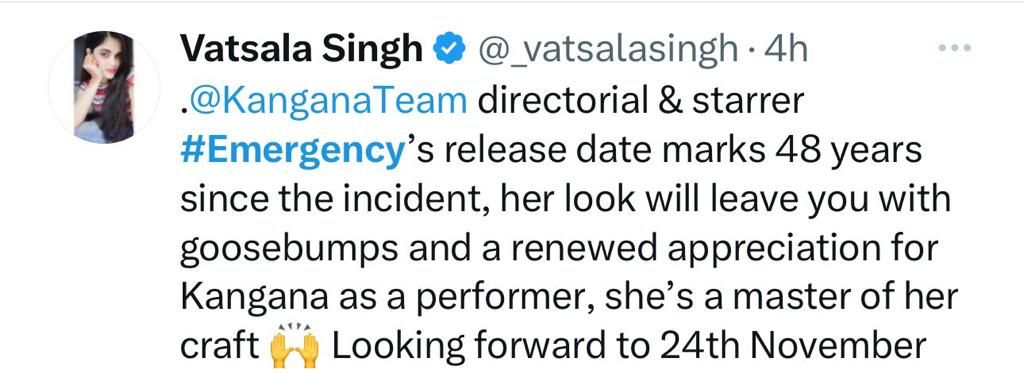 Another user wrote, “#Emergency a film that traces the political career of the former Prime Minister of India, Only #KanganaRanaut could have done Justice to this role of the Iron Lady”