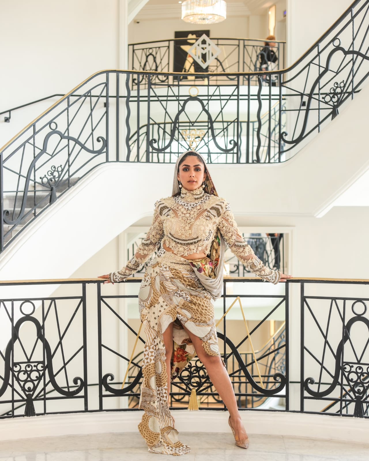 Now the actress has begun her day two of Cannes in a Anamika Khanna “hood couture” look, making her the only actress so far to sport a hooded look. Mrunal has defied the Cannes fashion statement, with one unexpected look after another which garnered her love from fans and praise from netizens. She finished the look with earrings from Diosa and shoes from Christian Louboutin.