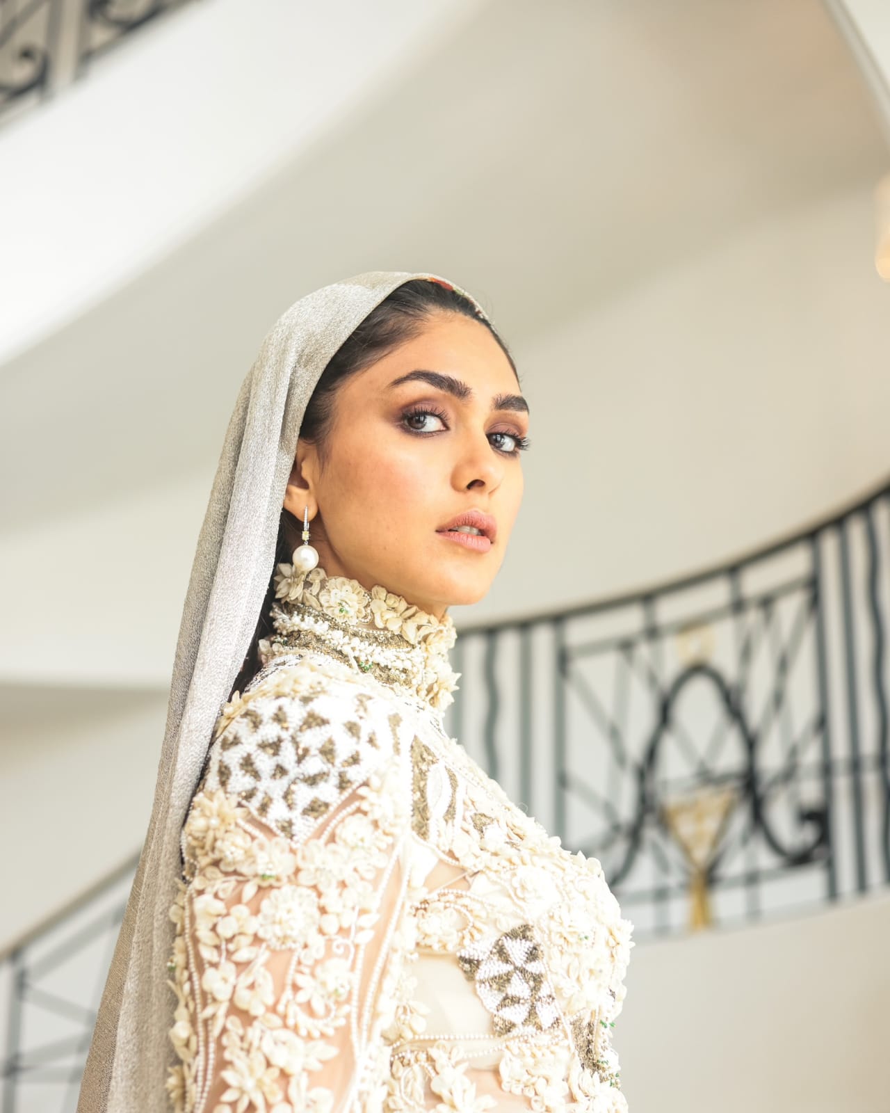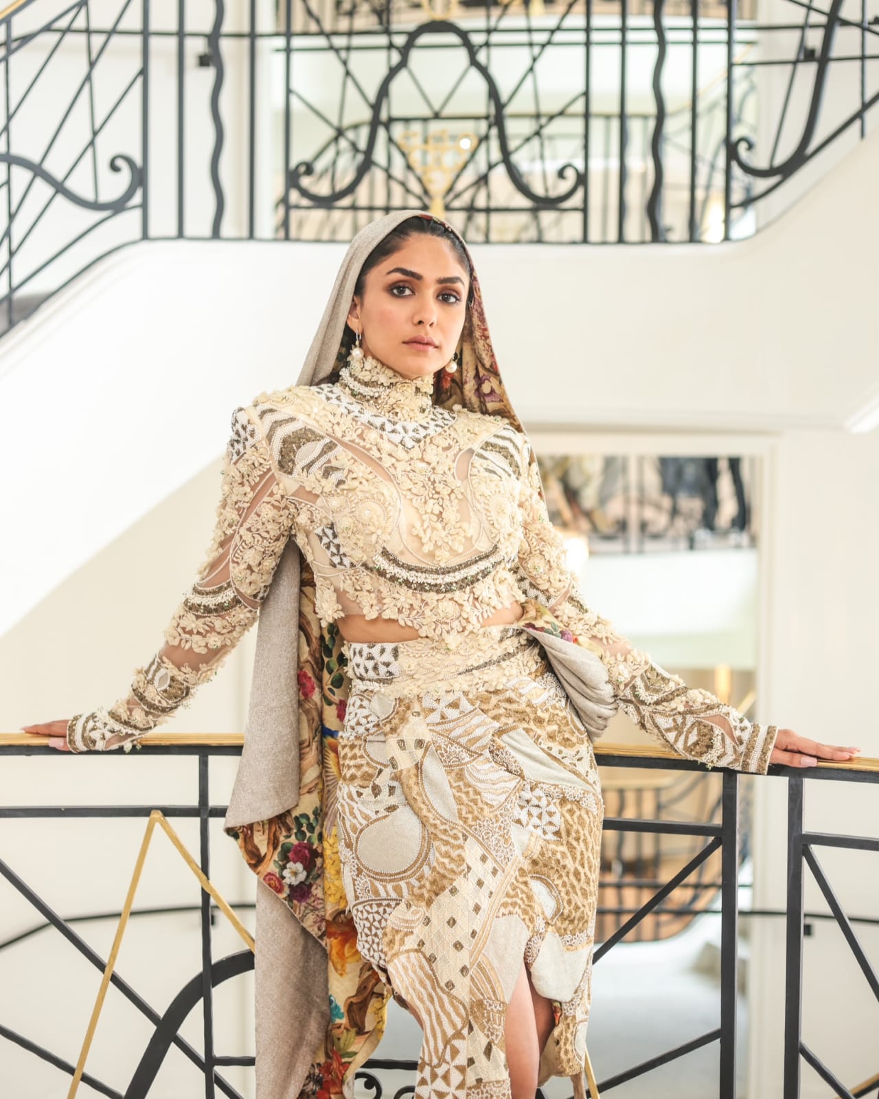 #MrunalThakur dons a classy “#HoodCouture” look by #AnamikaKhanna, making her the first actress to sport a hooded look at the festival so far.