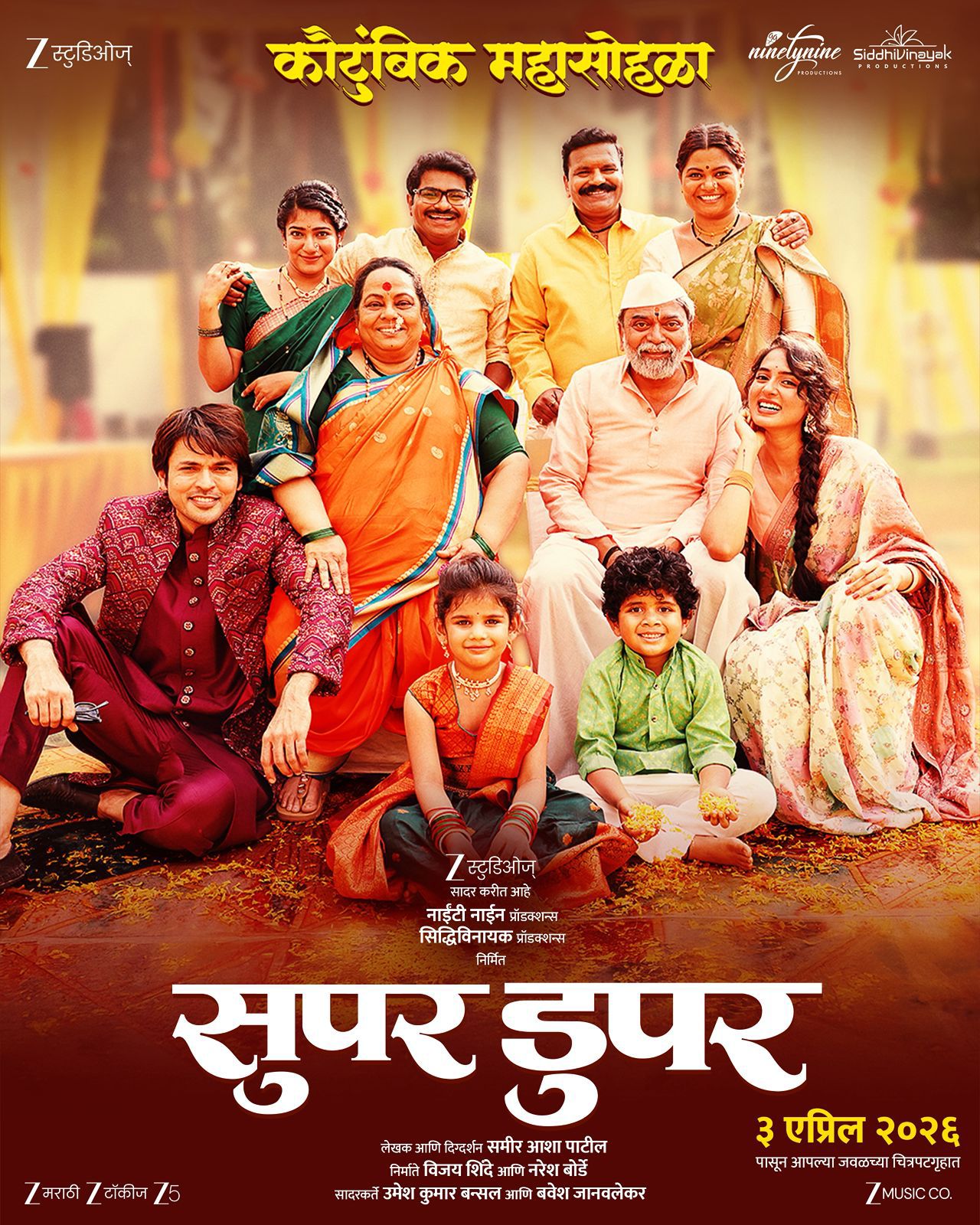 Marathi audiences love family stories—they dive into the joys and sorrows of households, laugh and cry with the characters, and see reflections of themselves in them. This massive viewer base across all ages, classes, and regions always cheers for heartfelt family tales. ‘Super Duper’ delivers just that: a film that will captivate, entertain, and touch hearts everywhere. Presented by Zee Studios, produced by Ninety Nine Productions and Siddhivinayak Productions, and directed by Samir Asha Patil, the explosive teaser for ‘Super Duper’ just dropped on social media.The teaser offers glimpses of a stellar cast, including Nimita Sawant, Shashank Shinde, Hrishikesh Joshi, Namrata Sambherao, Kushal Badrike, Pratibha Kote, and leads Lalit Prabhakar and Vidula Chaugule in the main roles. Tagged as a “family extravaganza,” the film hits theaters on April 3, and the teaser has fans buzzing with excitement.Director Samir Asha Patil shares, “We’re bringing a family film for families. A family shapes who we are, letting us experience a world of emotions. ‘Super Duper’ serves up a feast of those feelings—from kids to elders, it’ll feel like home for everyone.”